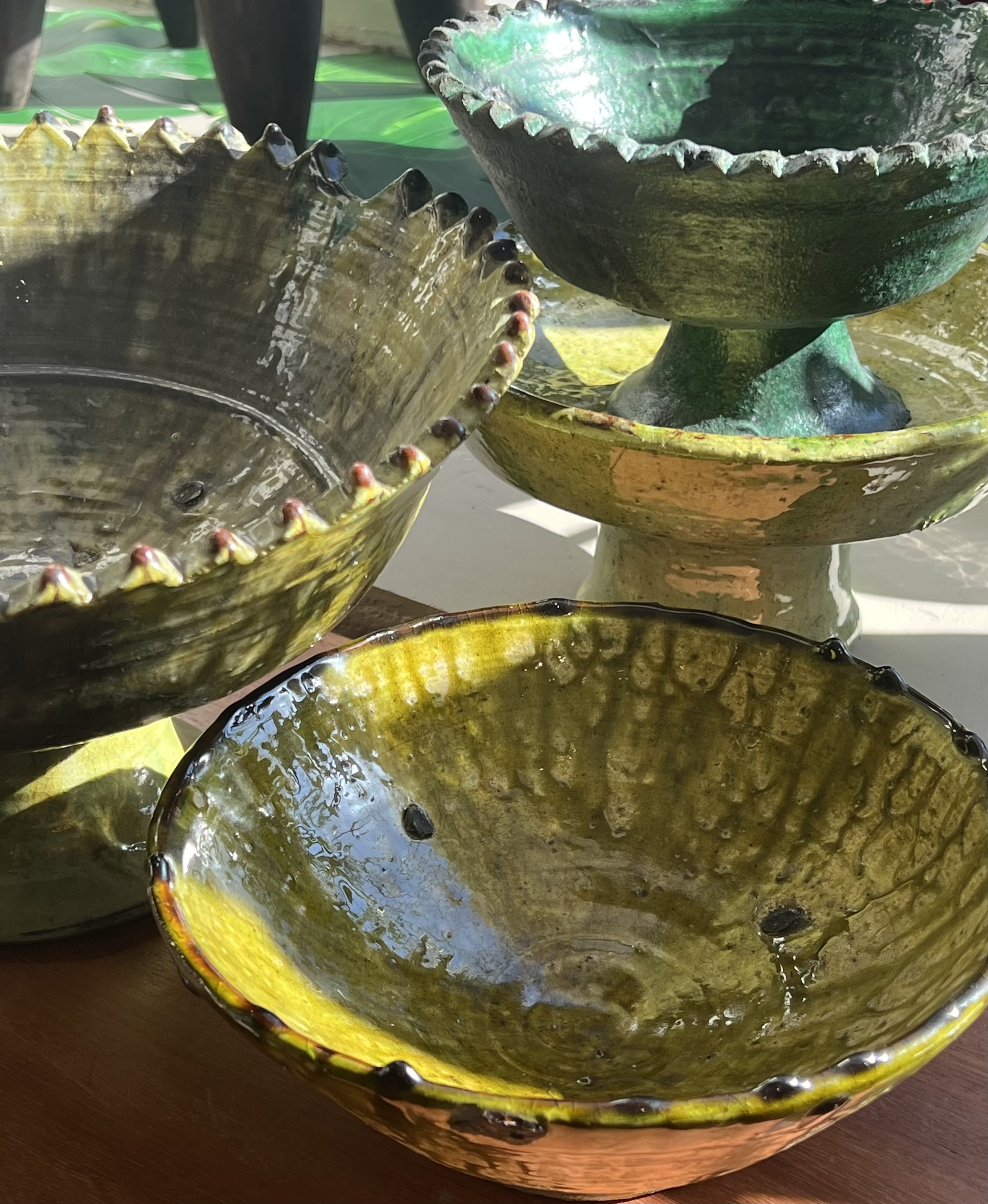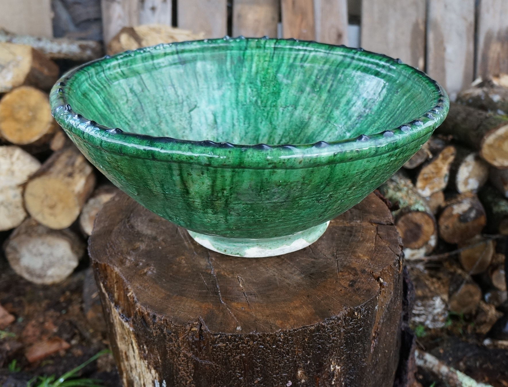 Son émail vert profond, issu de minéraux naturels, varie à chaque cuisson selon l’intensité du feu.